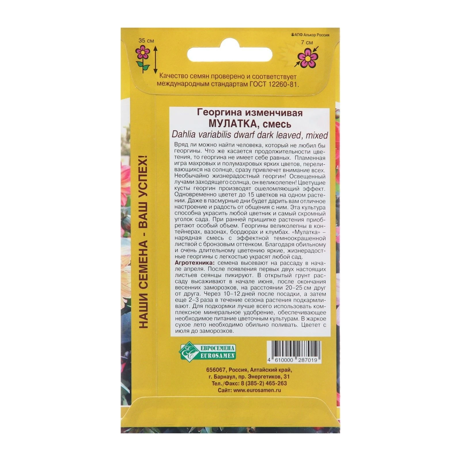 Георгина МУЛАТКА изменчивая смесь 20шт (Евросемена)