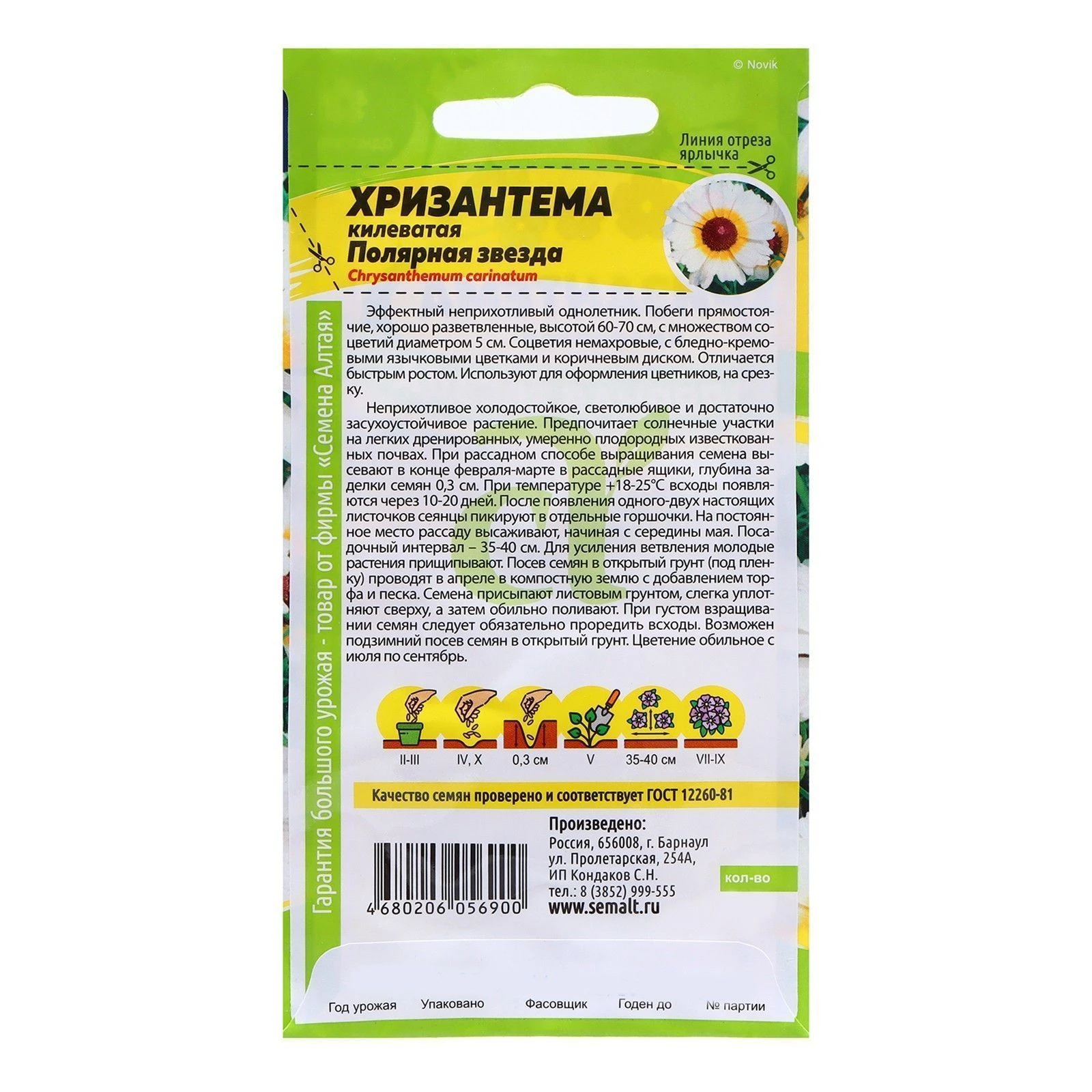 Количество товара в упаковке 10 ШтрихКод 4680206056900 Торговая марка Семена Алтая -