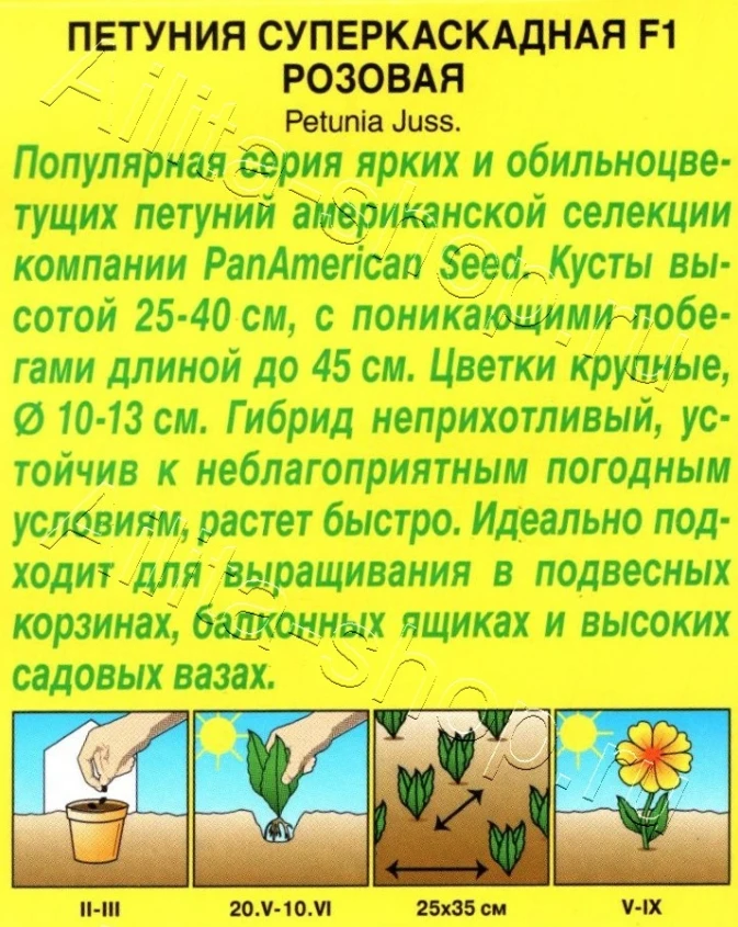 Идеально подходит для выращивания в подвесных корзинах, балконных ящиках и высоких садовых вазах. -
