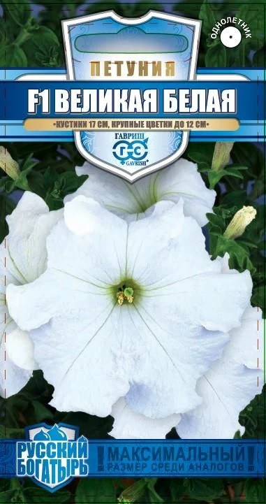 Петуния Великая белая F1 крупноцветковая серия Русский богатырь (Гавриш)