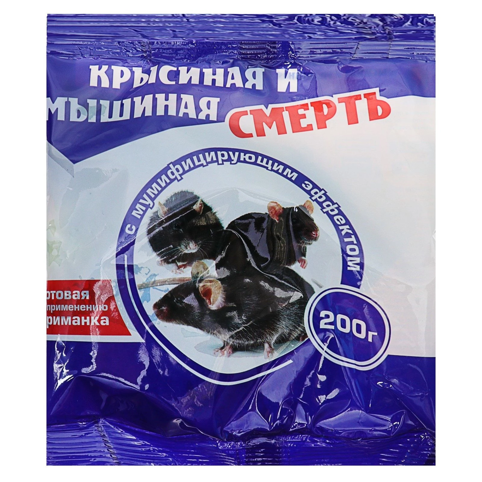 Готовая пищевая отравленная приманка с мумифицирующим эффектом для уничтожения серых и черных крыс, домовых мышей, полевок и других мышевидных грызунов для применения населением в быту.