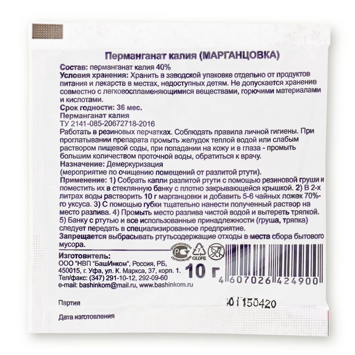 Марганцовка перманганат калия 10г 1/100 (Б/И)