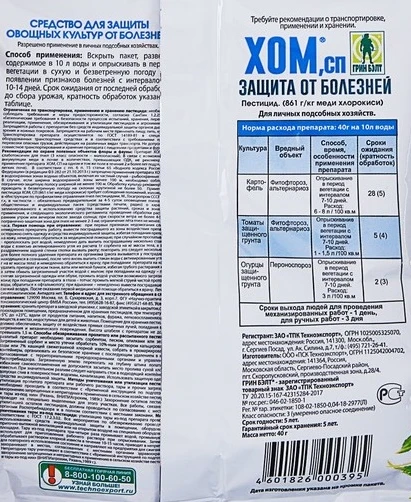 Эффективный препарат от комплекса болезней томатов, огурцов, картофеля.