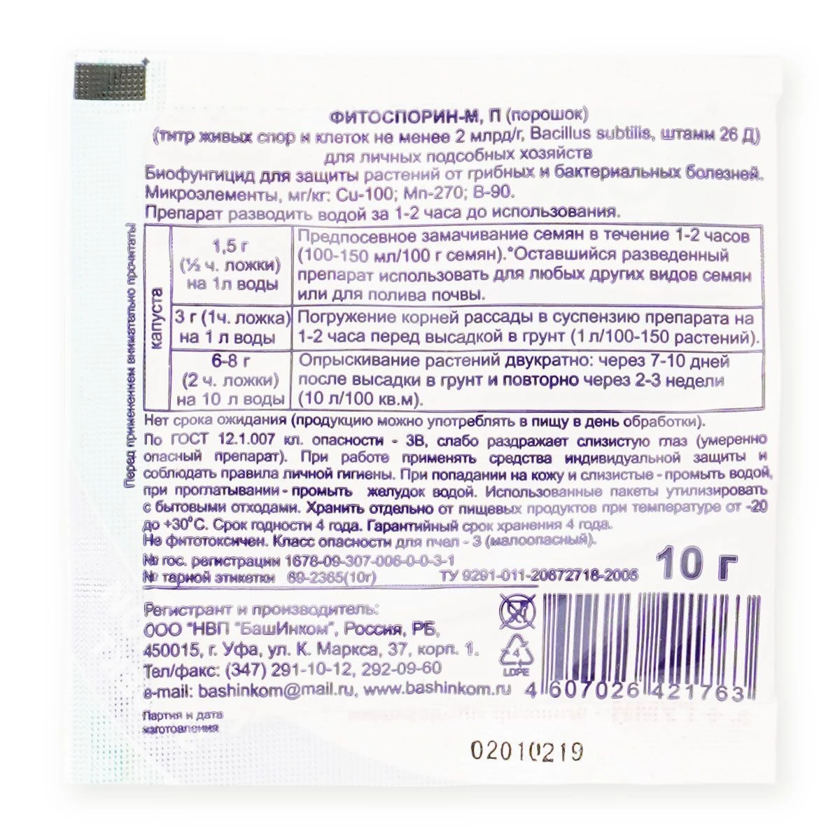Фитоспорин-М капуста 10г 1/10/100 (Б/И)