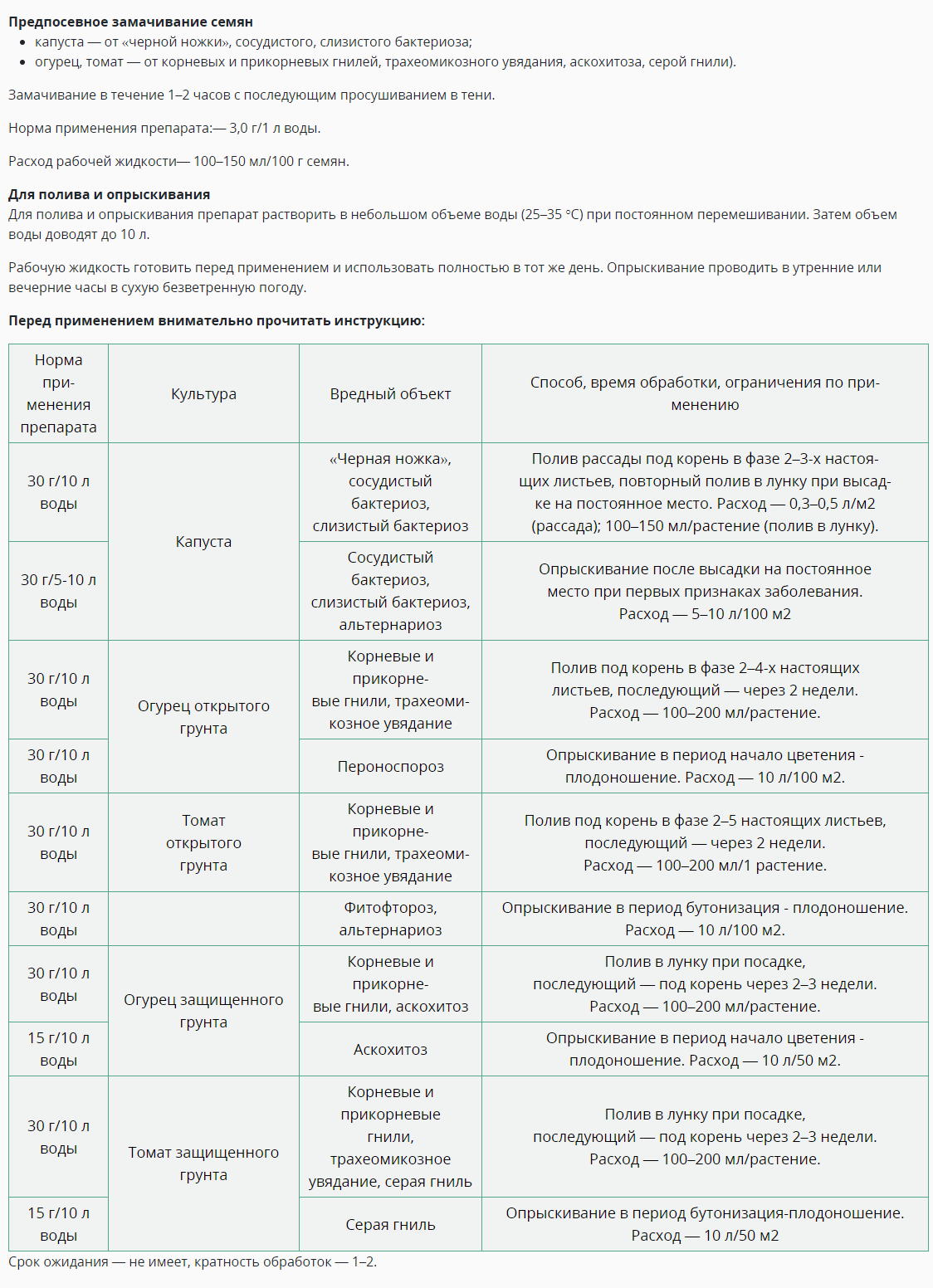 Защищает от корневых и плодовых гнилей, черной ножки, белой и серой гнили, макроспориоза, фузариоза, фитофтороза, антракноза, вилта и др.