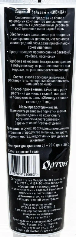 Для заживления ран при обрезке и прививке, механических повреждениях и солнечных ожогах плодовых и декоративных деревьев, кустарников и виноградной лозы.