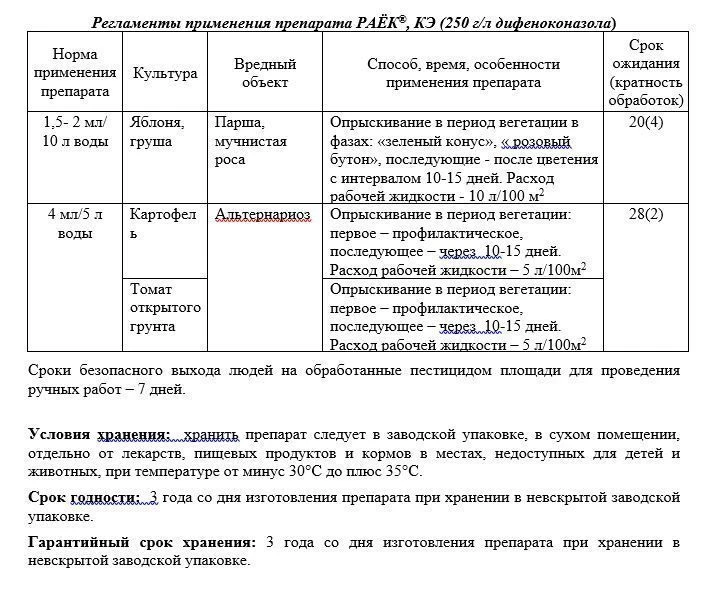 Быстро проникает в ткани растений и не смывается дождем уже через 2 часа после опрыскивания.