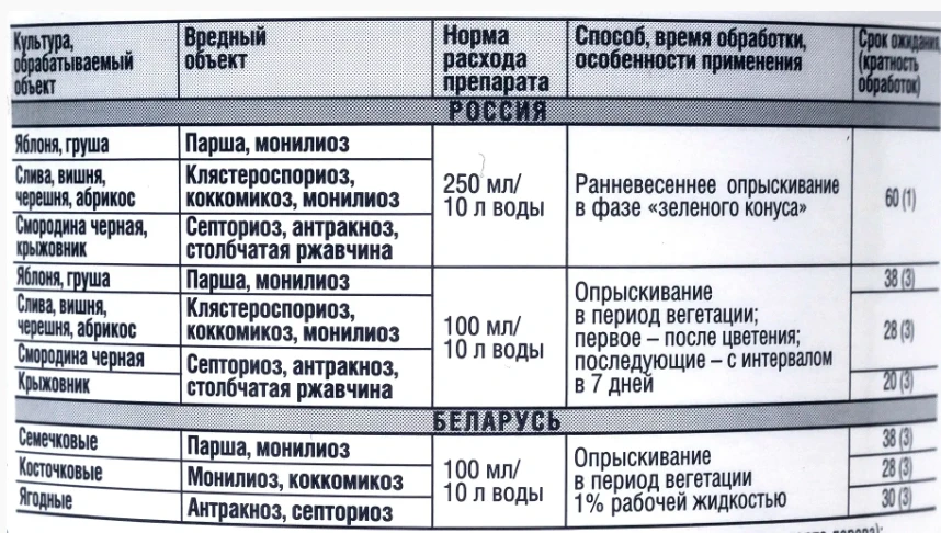 Препарат относится к категории контактных фунгицидов и представляет собой водно-суспензионный концентрат (ВСК) трехосновного сульфата меди.