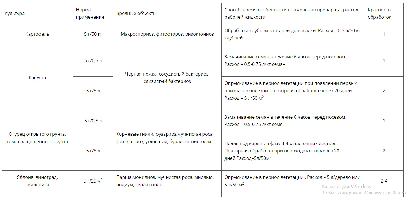 Препарат обеспечивает профилактику и лечение грибных и бактериальных заболеваний растений: мучнистой росы, фитофтороза, ложной мучнистой росы, корневых гнилей, фузариозного увядания и других.