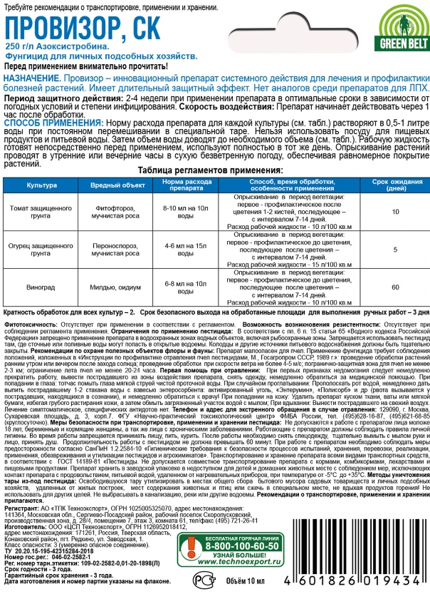 Провизор – высокая эффективность против широкого спектра заболеваний винограда, огурца и томата.
