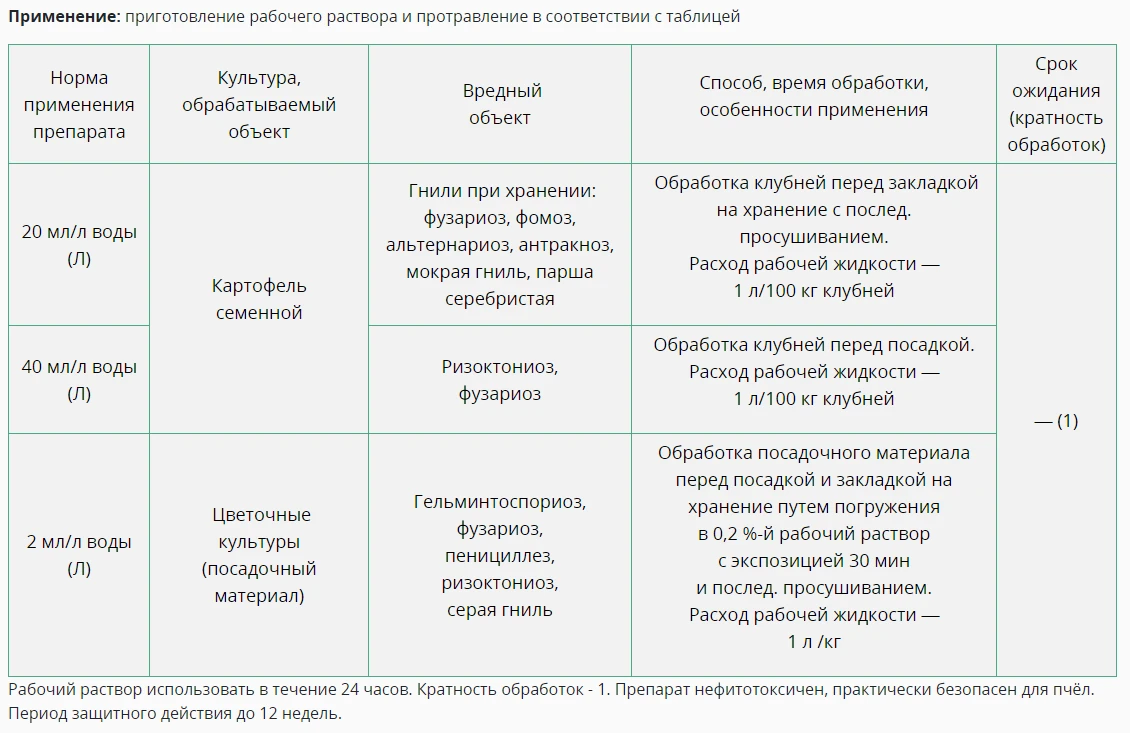 Защищает растения от болезней в течение всего периода роста и хранения.