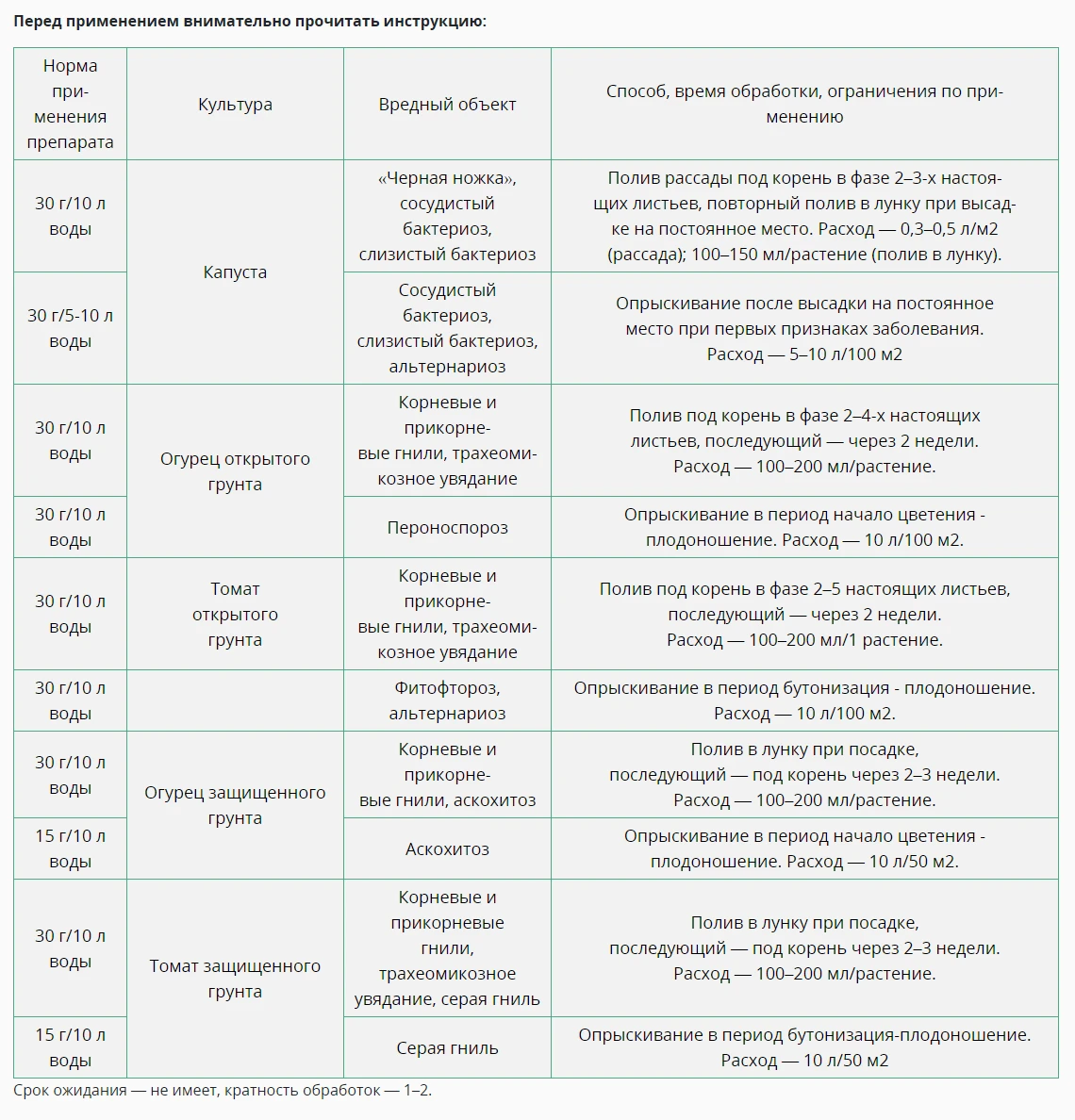 Защищает от корневых и плодовых гнилей, черной ножки, белой и серой гнили, макроспориоза, фузариоза, фитофтороза, антракноза, вилта и др.