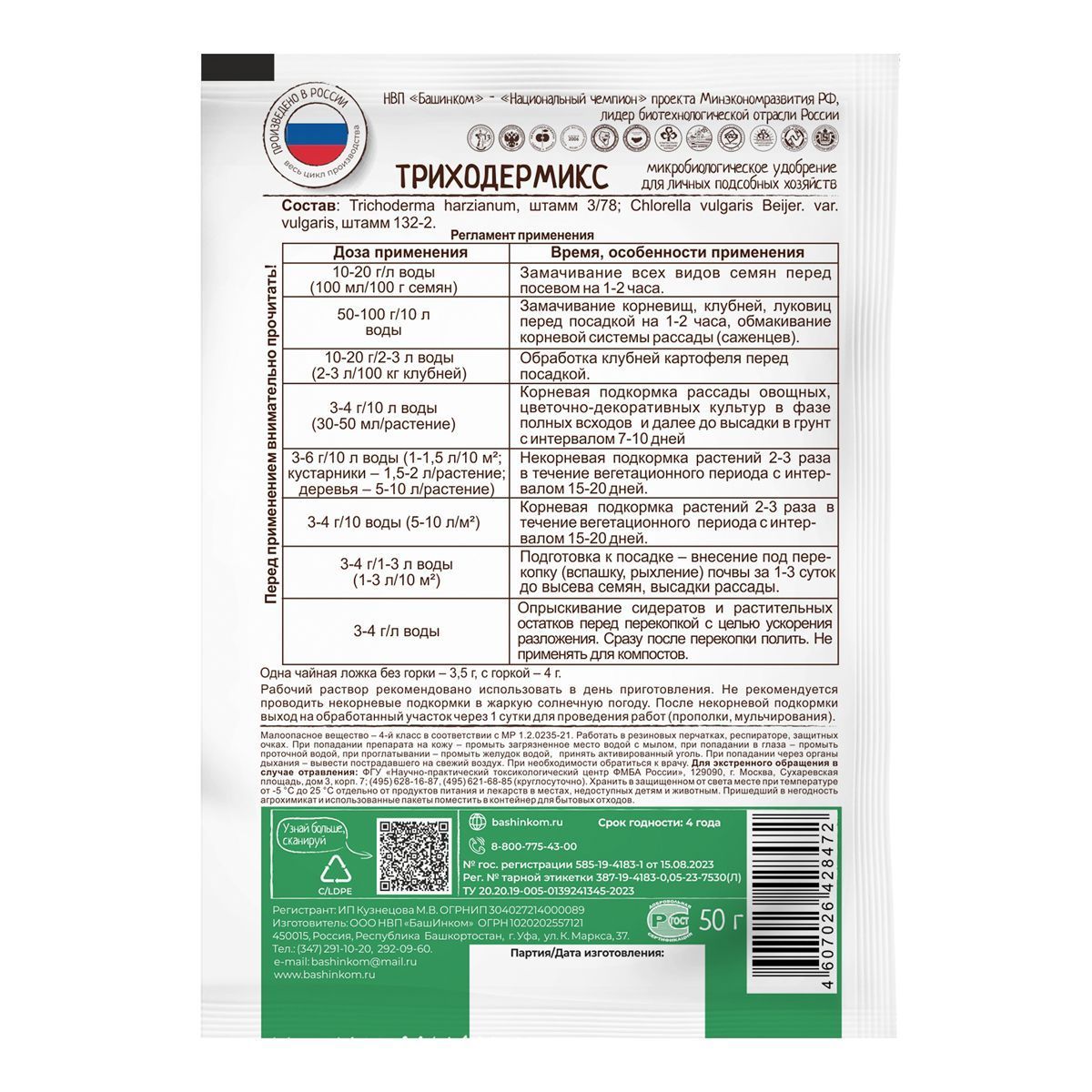 Trihoderma harzianum, штамм 3/78, Chlorella vulgaris Beijer. var. vulgaris, штамм 132-2. -