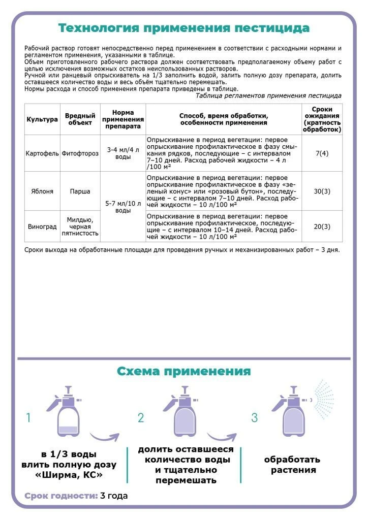 Препарат «Ширма, КС» предназначен для профилактики и лечения фитофтороза и альтернариоза на картофеле. Препарат блокирует распространение первичной и вторичной инфекции, защищая здоровую листву и клубни.