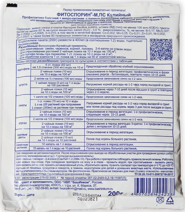 Фитоспорин-К Олимпийский, являясь микробиологическим биофунгицидом, содержит в себе живую споровую бактериальную культуру, которая подавляет многие грибные и бактериальные болезни растений.