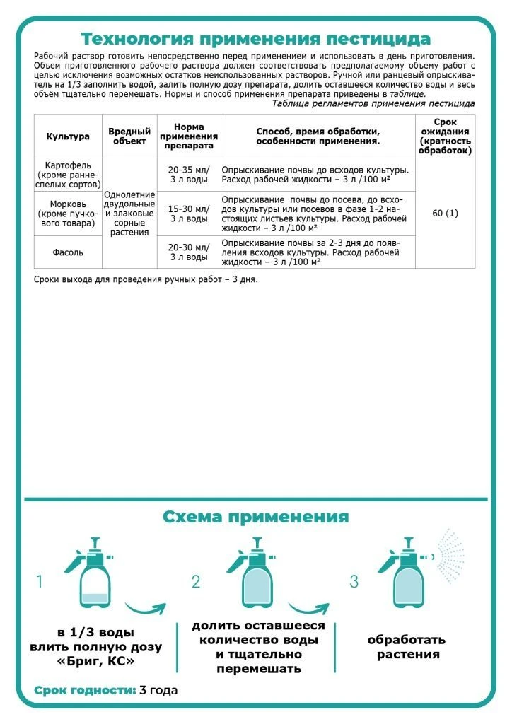 Оптимального эффекта можно добиться при использовании препарата до всходов основной культуры или до посева. -