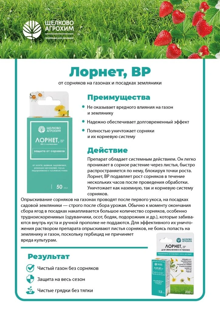 системный гербицид от однолетних и многолетних сорных растений на газонах и посадках земляники.