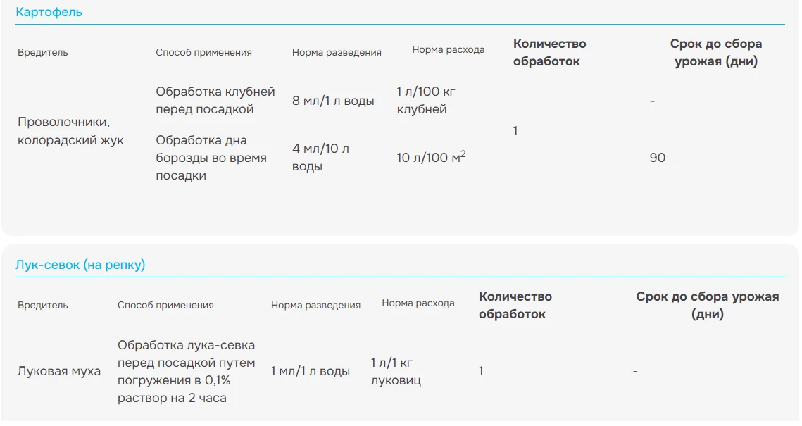 Норма расхода: 1 л/100 кг клубней.
