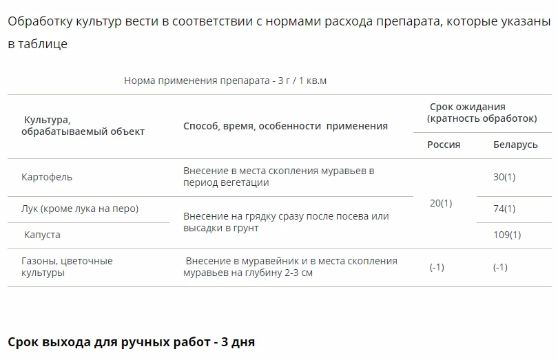 гранулы размещают на подложках из непищевых материалов и расставляют в нежилых помещениях в местах обитания, передвижения или скопления насекомых.