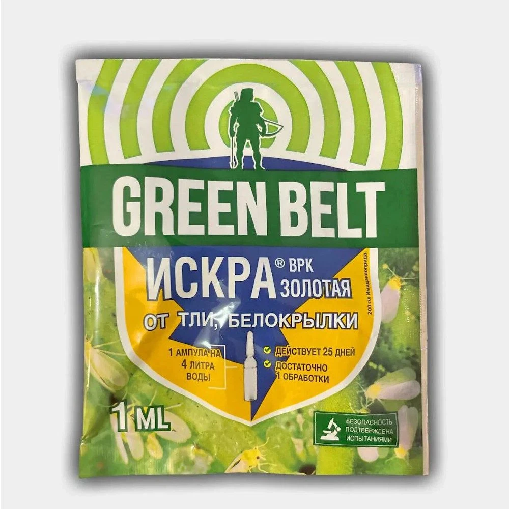 Green Belt Искра Золотая – инсектицидное средство для защиты томатов, огурцов, цветочных культур от тли, трипсов, белокрылки, картофеля от колорадского жука и его личинок.