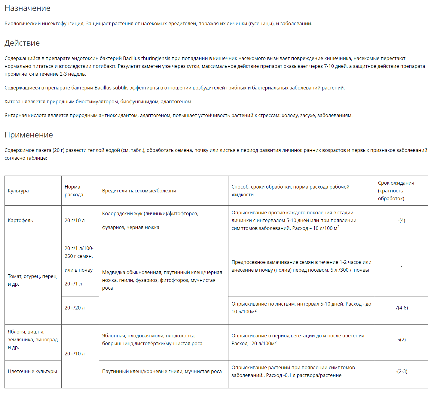Споры Bacillus thuringiensis, споры Bacillus subtilis, хитозан, янтарная кислота.