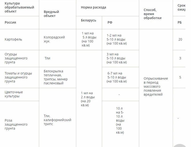 Обеспечивает надежную защиту от вредителей основных сельскохозяйственных культур в различных условиях их выращивания.