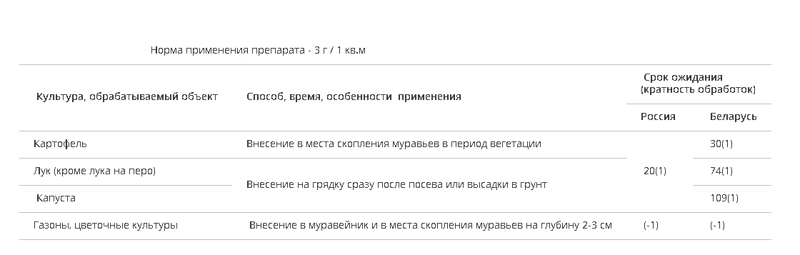 гранулы размещают на подложках из непищевых материалов и расставляют в нежилых помещениях в местах обитания, передвижения или скопления насекомых.