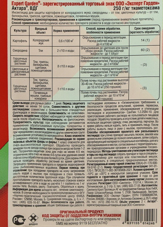 Expert Garden Актара – инсектицид кишечно-контактного действия для контроля комплекса сосущих и листогрызущих вредителей.
