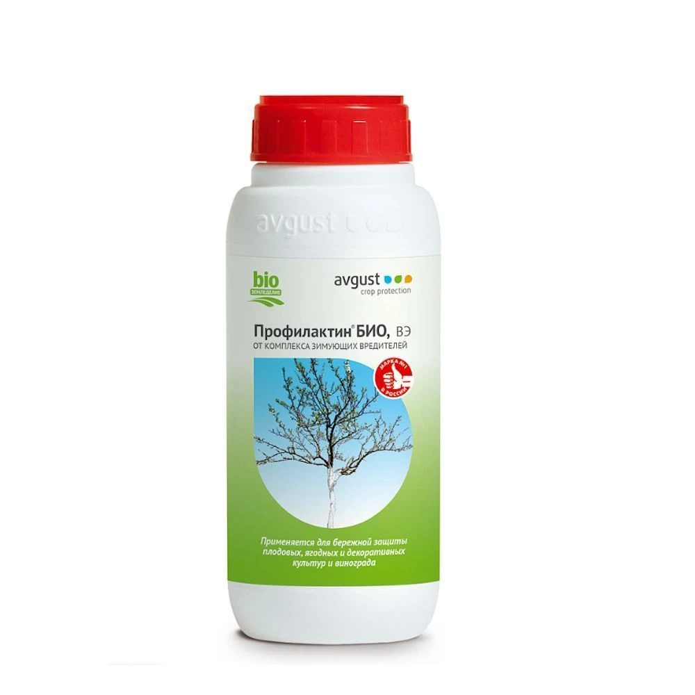 Avgust Профилактин БИО – комбинированный препарат для защиты плодовых, ягодных, декоративных культур и винограда от широкого спектра зимующих вредителей.