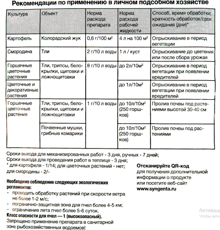 Инсектицид применяют как для опрыскивания растений в период вегетации, так и для внесения в почву.