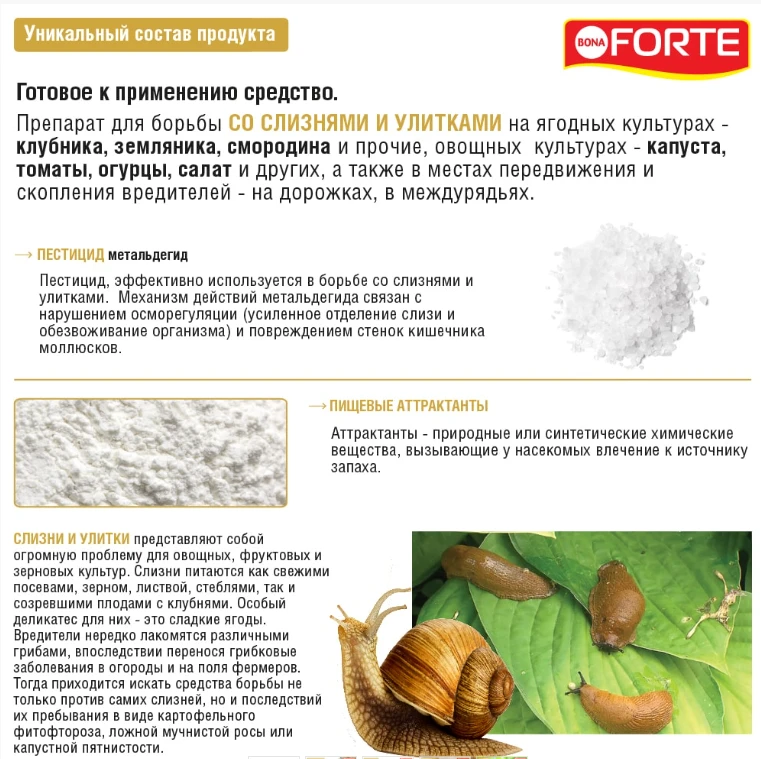 Эффективная, готовая приманка для уничтожения слизней и улиток на посадках овощных, цветочных и плодовых культур и винограда