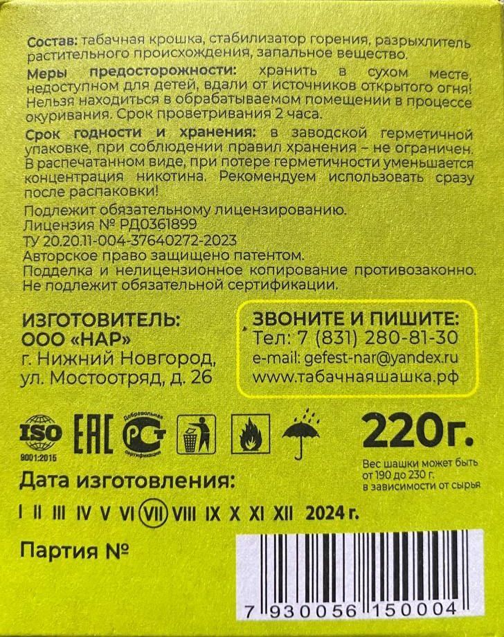 Шашка табачная Гефест 220г 1/30 (РС)