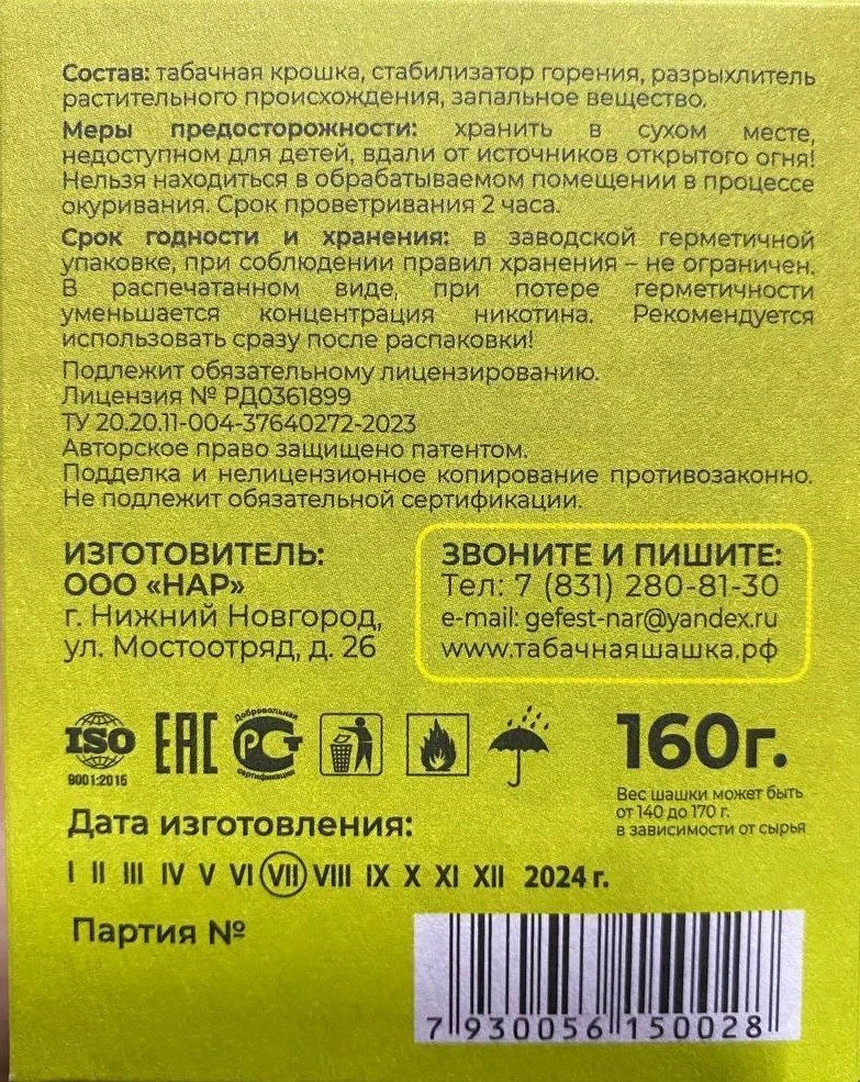 Количество товара в упаковке 40 ШтрихКод 7930056150028 Торговая марка Гефест -