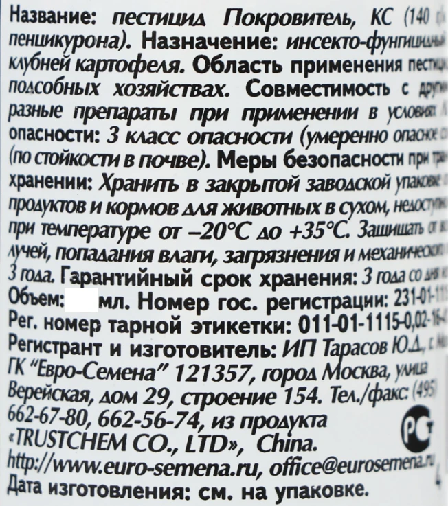 Покровитель – инсекто-фунгицидный препарат для обработки картофеля и других овощных, плодовых и цветочных культур от грызущих, сосущих вредителей, а также от болезней.