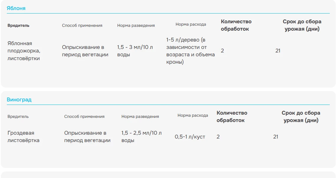 Виноград - Гроздевая листовертка, 1,5-2,5 мл/ 10 л воды.