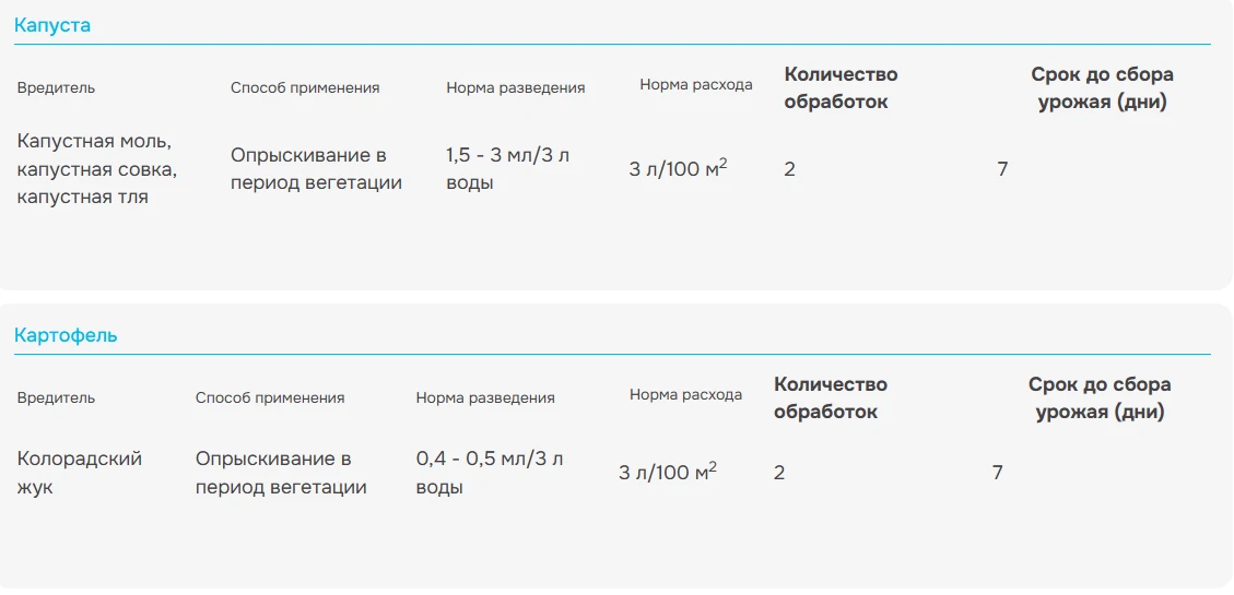 Капуста - Капустная моль, капустная совка, капустная тля 1,5-3 мл/ 3 л воды.