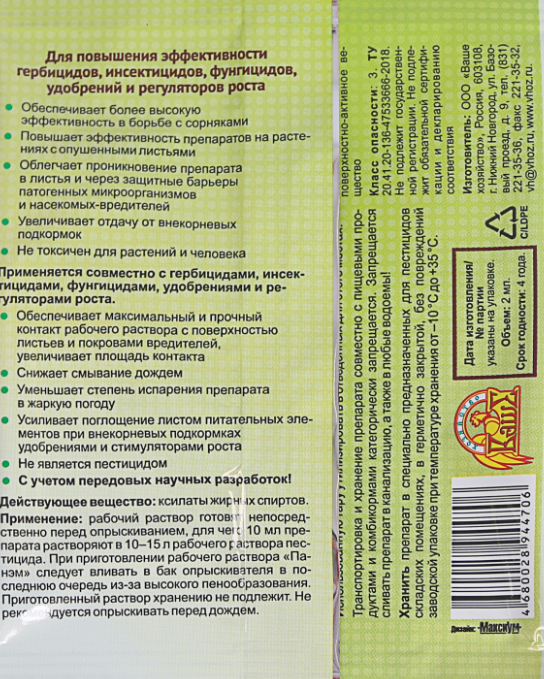 «Панэм» — для повышения эффективности гербицидов, инсектицидов, фунгицидов, удобрений и регуляторов роста.