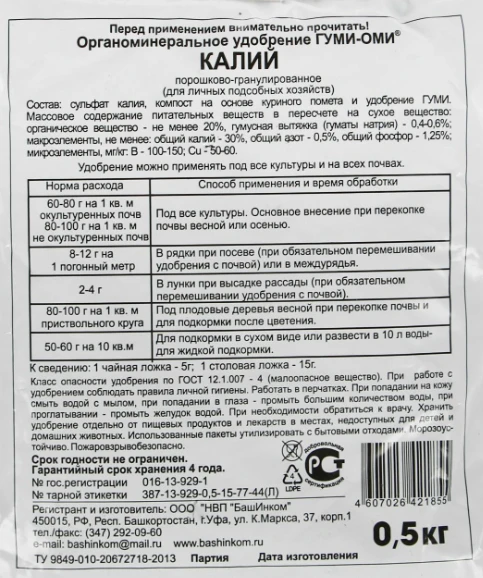 Удобрение Гуми-Оми Калий 0,5кг 1/25 (Б/И)