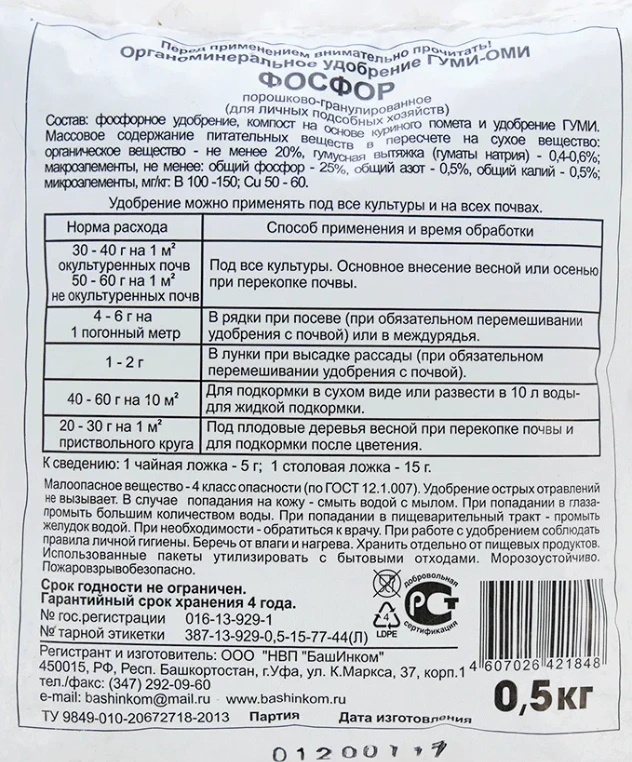 Удобрение Гуми-Оми Фосфор 0,5кг 1/25 (Б/И)