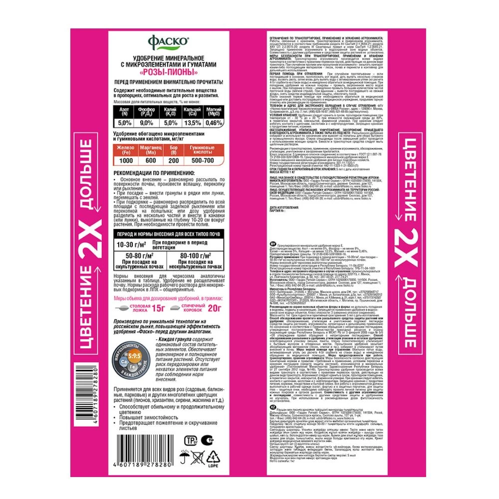Количество товара в упаковке 20 ШтрихКод 4607189278280 Назначение удобрения или грунта Универсальное Торговая марка Фаско Форма выпуска Гранулы Вид удобрения Минеральные -