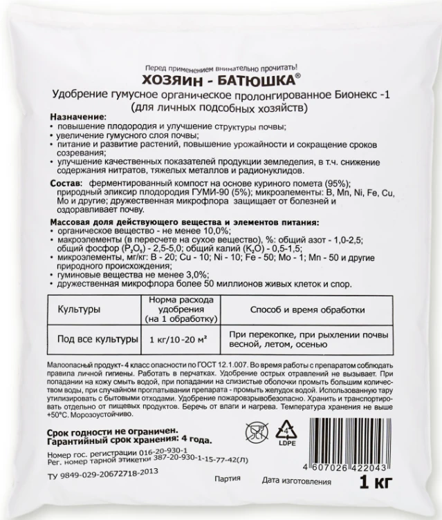 Хозяин Батюшка – гумусное органическое удобрение.