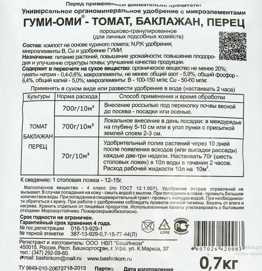 Удобрение Гуми-Оми Томат 0,7кг 1/20 (Б/И)