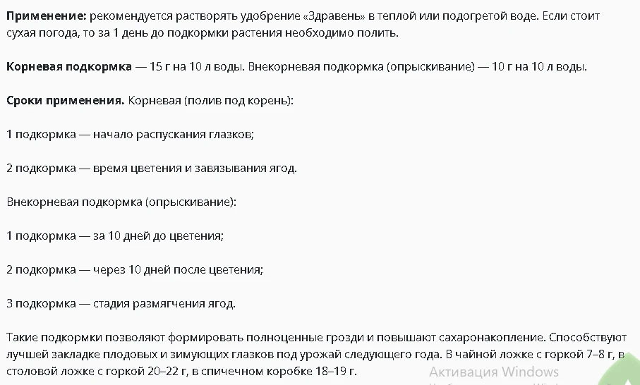 Препарат усиливает рост и развитие растений, значительно повышает урожайность, повышает содержание в ягодах сахаров,