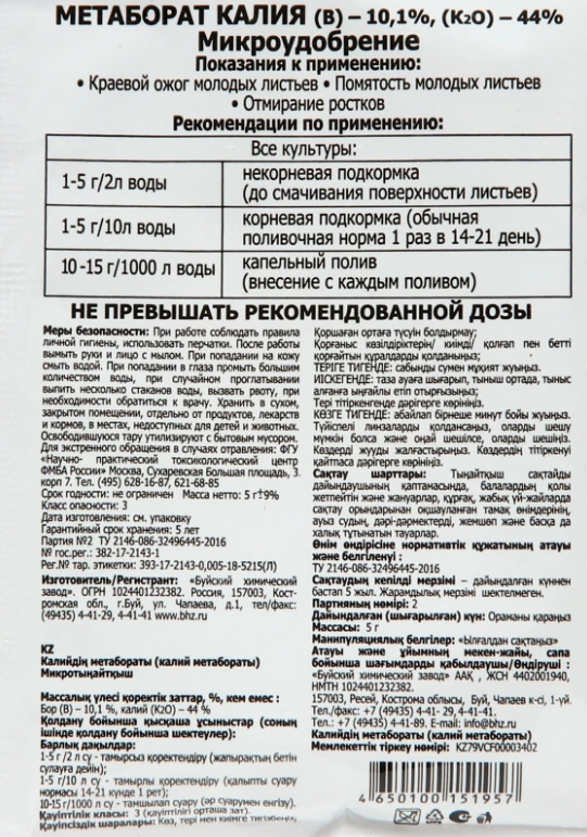 Удобрение Метаборат калия 5г 1/10/30 (БХЗ)