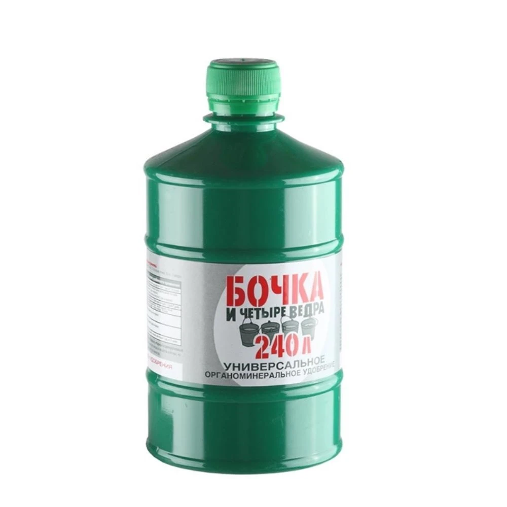 Количество товара в упаковке 9 ШтрихКод 4607018531135 Назначение удобрения или грунта Универсальное Торговая марка Бочка и четыре ведра Форма выпуска Жидкость Вид удобрения Органо-минеральные -