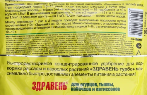 Здравень Турбо для огурцов – быстрорастворимое концентрированное удобрение.