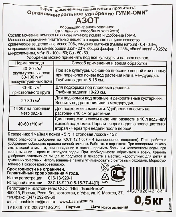 Удобрение Гуми-Оми Азот 0,5кг 1/25 (Б/И)