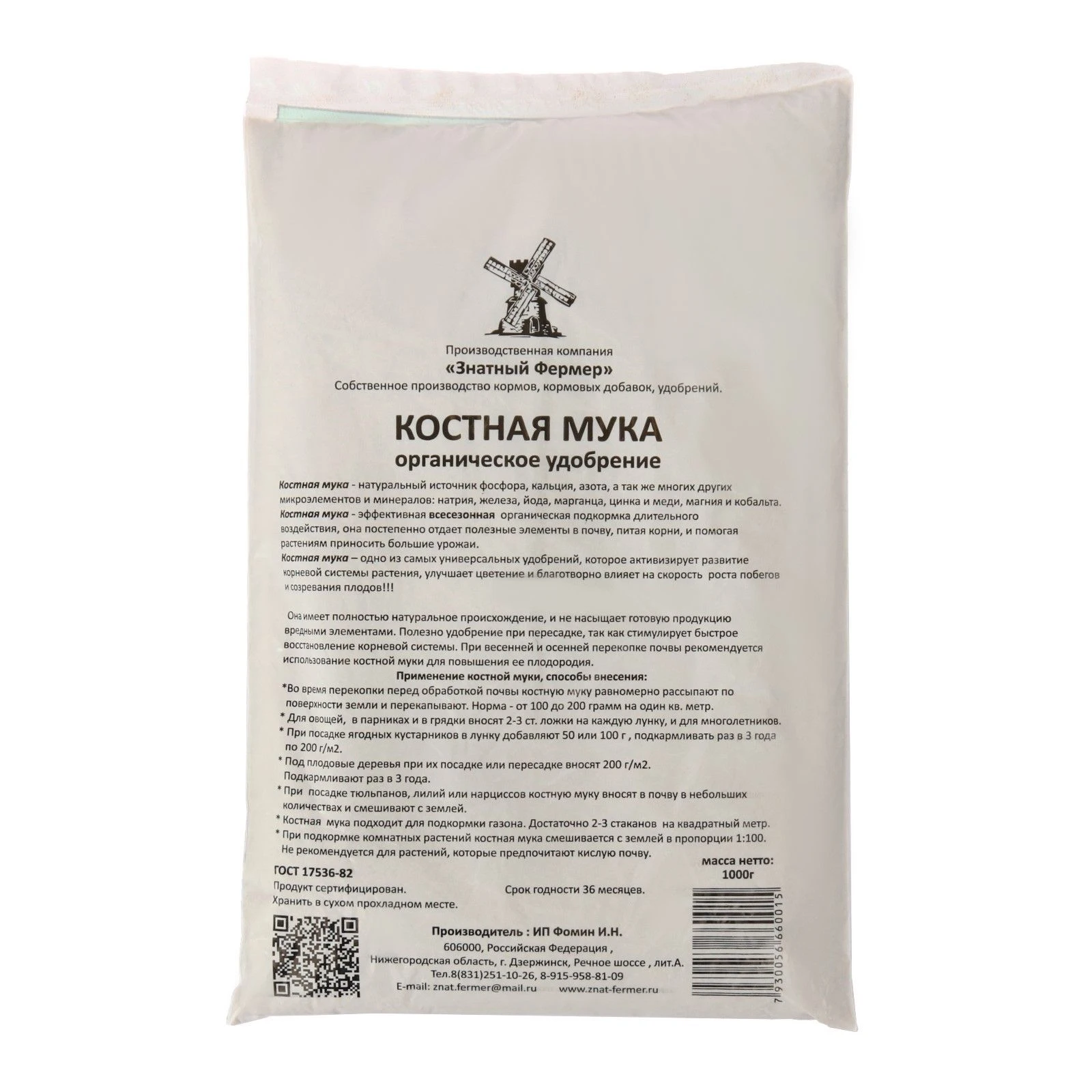 Костная мука -натуральный источник фосфора, кальция, азота, а так же многих других микроэлементов и минералов: натрия, железа, йода, марганца, цинка и меди, магния и кобальта.