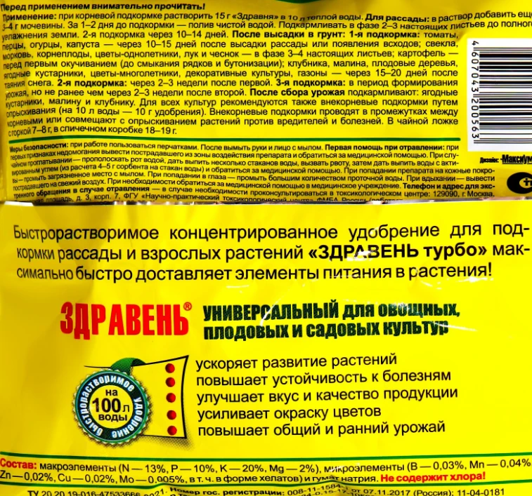 Здравень Турбо Универсальный – быстрорастворимое концентрированное удобрение.