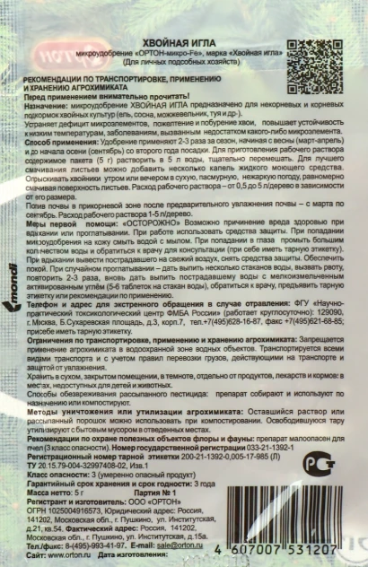 Хвойная игла микроудобрение 5г 1/100 (Ортон)